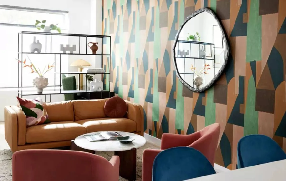 ۱۴. استفاده از کاغذ دیواری موقتی برای ایجاد طرح هندسی