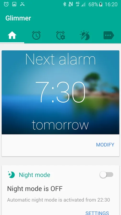 یکی از زیباترین برنامههای هشداری که برای گوشیهای اندرویدی عرضه شده و به وسیلهی آن میتوان از خواب بیدار شد، Glimmer نام دارد.