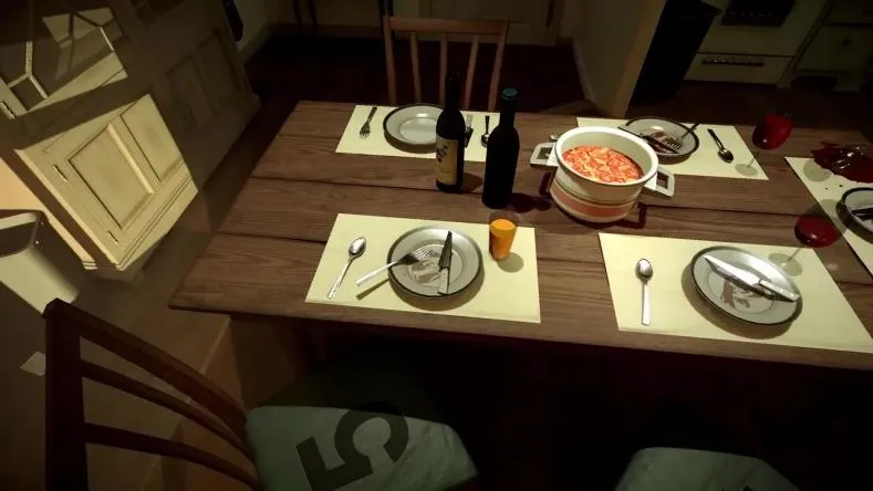 مشخص است هرکس که روی صندلی پنجم این میز نشسته است، تنها کسی بوده که به جای خوردن شراب، آبپرتقال خورده است. با توجه به اینکه در یک یادداشت به شخصیت «جیک» (Jake) بهعنوان کسی که در حال ترک اعتیاد به الکل بوده است، اشاره میشود، میتوان فرض را بر این گرفت که این صندلی متعلق به جیک بوده است.