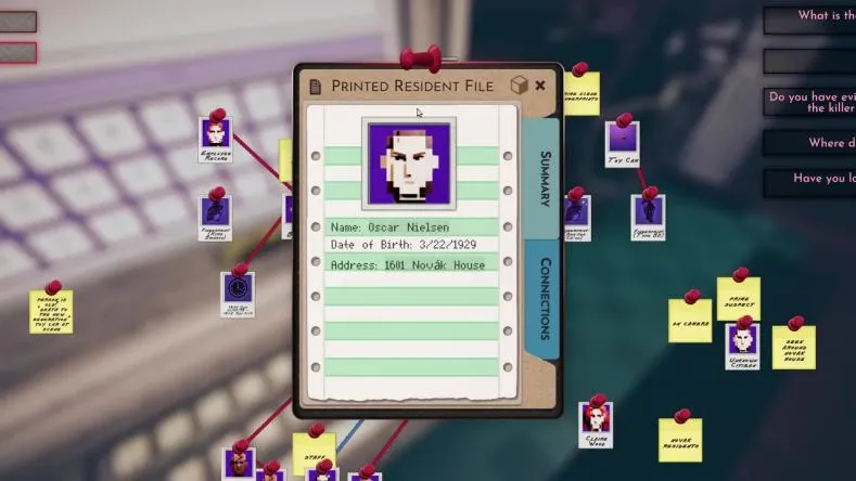 نوع آخر بازی بازرسیمحور است. برای توضیح دادن این مورد، اجازه دهید مثالی از یکی از پروندههای قتل در سایههای تردید (Shadows of Doubt) را بیاورم، یک بازی کارآگاهی که در لحظهی نوشته شدن این مقاله در حالت ارلی اکسس (Early Access) قرار دارد.