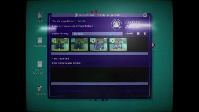 در داستان او (Her Story)، میتوان واژهها و عبارتهایی را که در کلیپها به زبان آورده میشوند جستجو کرد. یا دربارهی واژههایی که ممکن است در کلیپی دیگر به زبان آورده شوند، حدسهایی زد. مثلاً در یکی از کلیپها دیدم که یک خالکوبی روی دست شخصیت زن دیده میشود که قبلاً دیده نمیشد. برای همین عبارت «خالکوبی» را جستجو کردم.