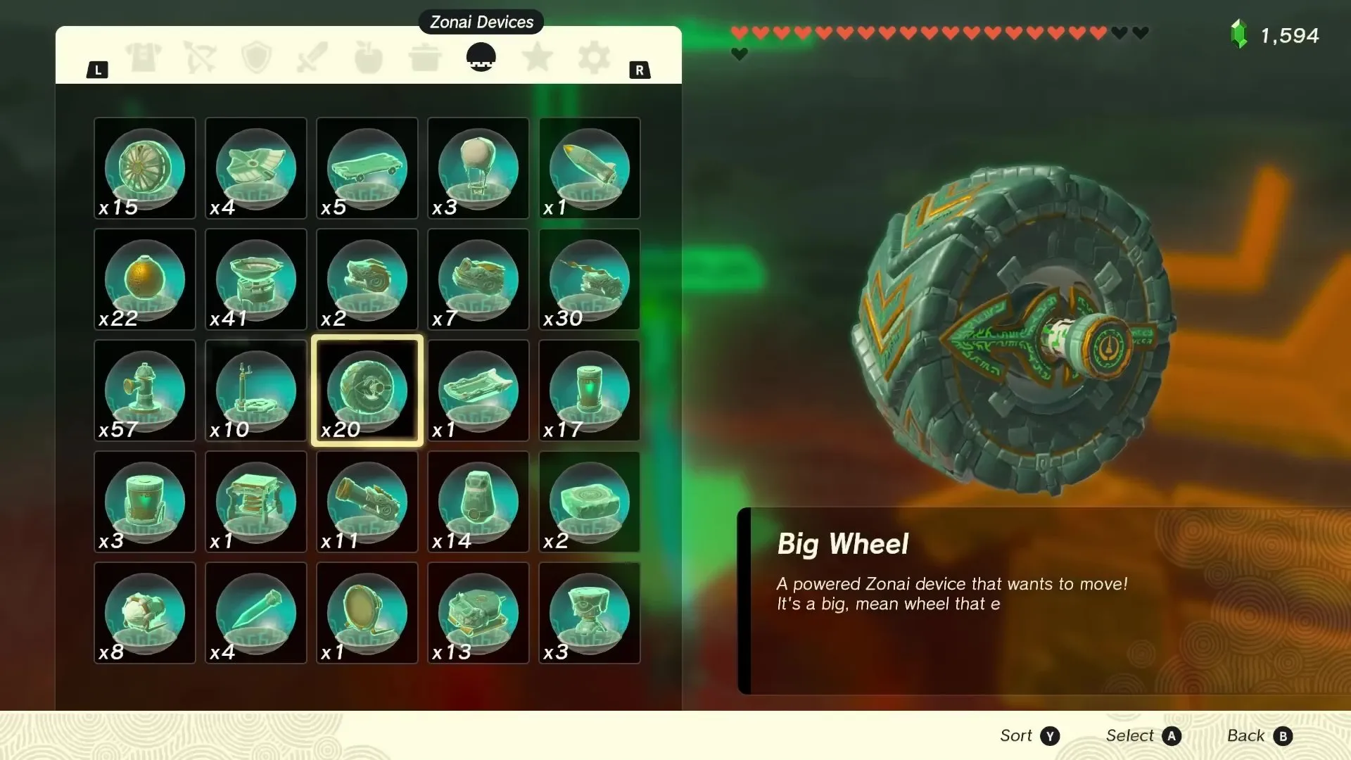 یکی دیگر از منابع سادهسازی در بازی ابزار زونای (The Zonai Devices) هستند. ابزار زونای، آیتمهای ویژهای هستند که ابزارآلات قدرتمندی چون پنکه، چرخ، توپ جنگی و سکوهای شناور را به دنیای بازی اضافه میکنند.