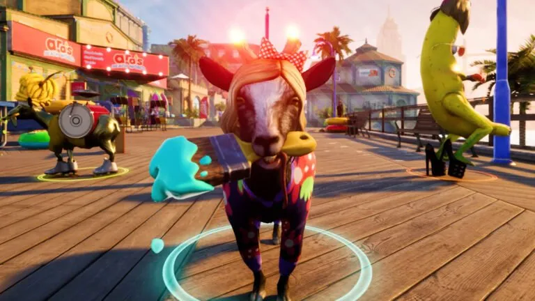 از طرفی در بازی آیتمهای تزئینی زیادی وجود دارد که میتوانید با استفاده از آنها بز منحصربهفرد خود را ساخته و او را شخصیسازی کنید. شما میتوانید یک کلاه گیس غول پیکر را بر سر گذاشته و قوطی رنگ به عنوان کفش استفاده کنید یا مانند یک شوالیهی قرون وسطایی لباس پوشیده و از چشمانتان لیزر شلیک کنید. به طور کلی تنوع در بخش شخصیسازی بازی بسیار بالا است.