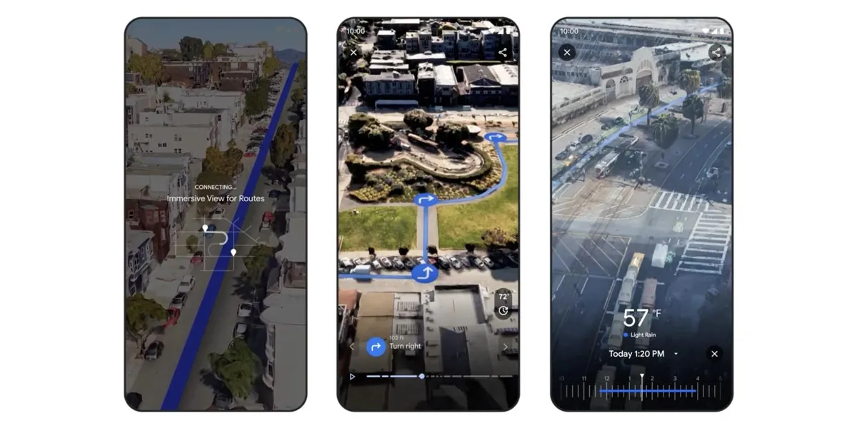 سال 2021 گوگل قابلیت مسیریابی بهینه برای خودروهای الکتریکی را عرضه کرد که به تدریج در کشورهای مختلف در دسترس قرار گرفت. در سال 2022 و در کنفرانس I/O گوگل از قابلیت «نمای فراگیر» (Immersive View) رونمایی کرد که نمای کلی ساختمانها را به صورت سهبعدی به کاربران نمایش میدهد. قابلیتی که در سالهای بعد برای مسیریابی هم در دسترس قرار گرفت.