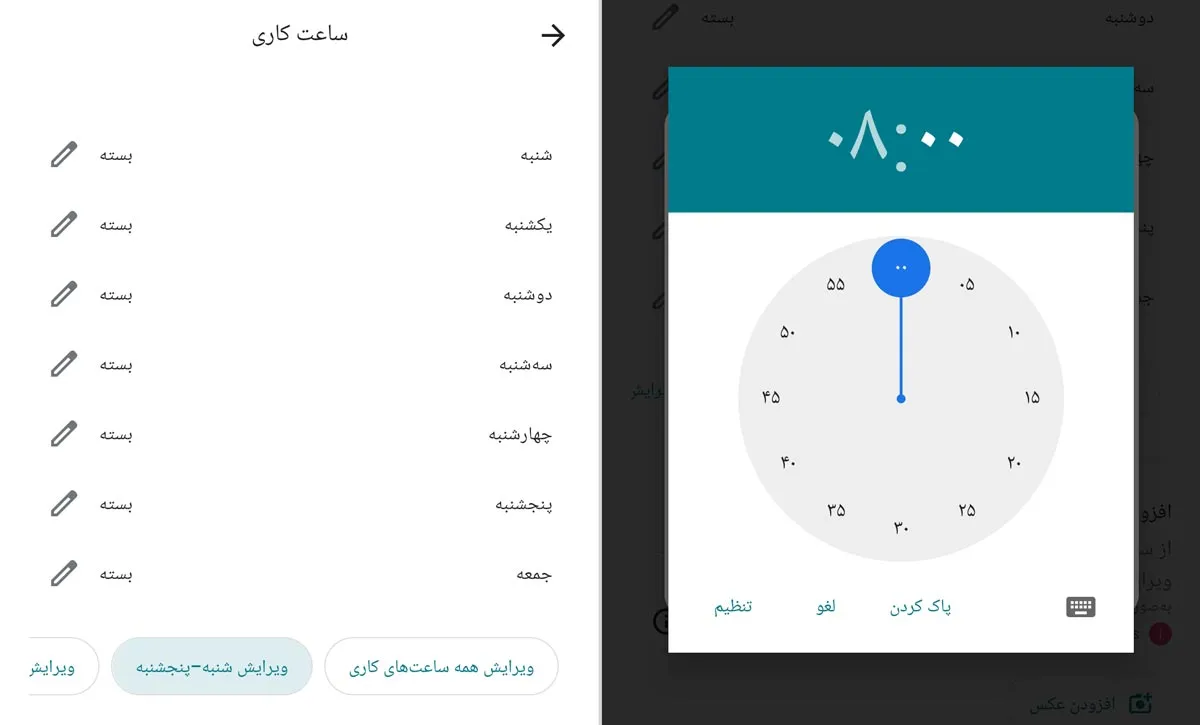 ساعت کاری هر مکان دیگر موردی است که باید هنگام ثبت لوکیشن ارائه شود. ثبت ساعت کاری منطبق بر واقعیت، به بهتر دیده شدن مکان کمک میکند. ساعت کاری به ساعتهایی اشاره دارد که مردم میتوانند به صورت حضوری به مکان مراجعه کنند. اگر ساعت کاری کاملا اشتباهی، برای مثال شبانهروزی برای فروشگاهی که تنها در روز باز است، انتخاب شود، اعتبار آن در نقشه کاهش مییابد.
