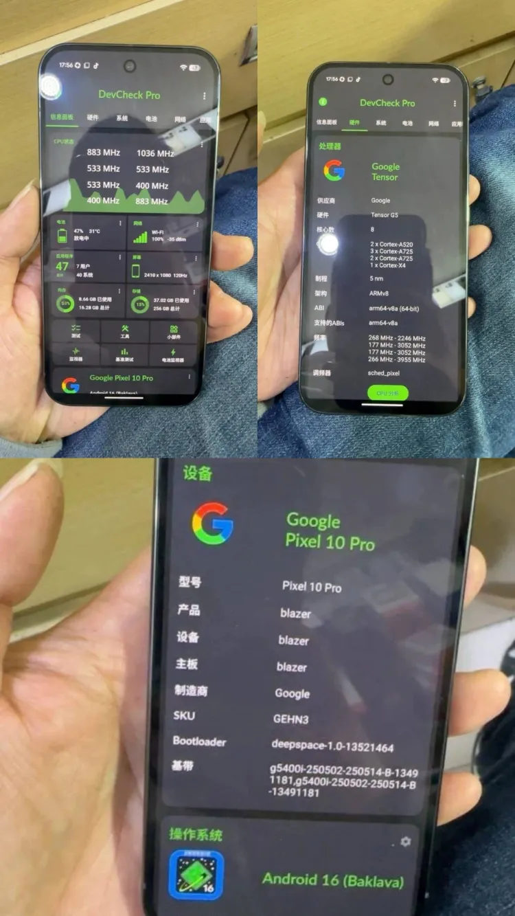 مهمترین نقطه قوت و تمرکز اصلی در سری پیکسل 10، بدون شک پردازندهی نسل جدید تنسور G5 خواهد بود. این تراشه که توسط کمپانی تایوانی TSMC تولید میشود، محور اصلی بهبود عملکرد و کارایی در این نسل از گوشیهای گوگل خواهد بود. اطلاعات به دست آمده از نمونهی پیکسل 10 پرو نشان میدهد که این گوشی با 16 گیگابایت رم و 256 گیگابایت حافظهی داخلی عرضه خواهد شد. پردازندهی تنسور G5 در این مدل، از یک هستهی قدرتمند Cortex-X4، یک مجموعهی سهتایی از هستههای Cortex-A725، یک مجموعهی دوتایی دیگر از هستههای Cortex-A725 و دو هستهی کممصرف Cortex-A520 بهره میبرد.