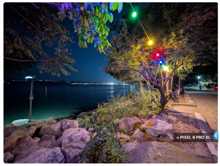 در شب، گلکسی S24 اولترا برتری دارد، زیرا گسترهی دینامیکی بهتری ارائه میدهد و به خوبی جزییات مانند چرخ و فلک دوردست را نمایش میدهد، در حالی که پیکسل 9 پرو XL ممکن است صحنه را بیش از حد روشن کند.
