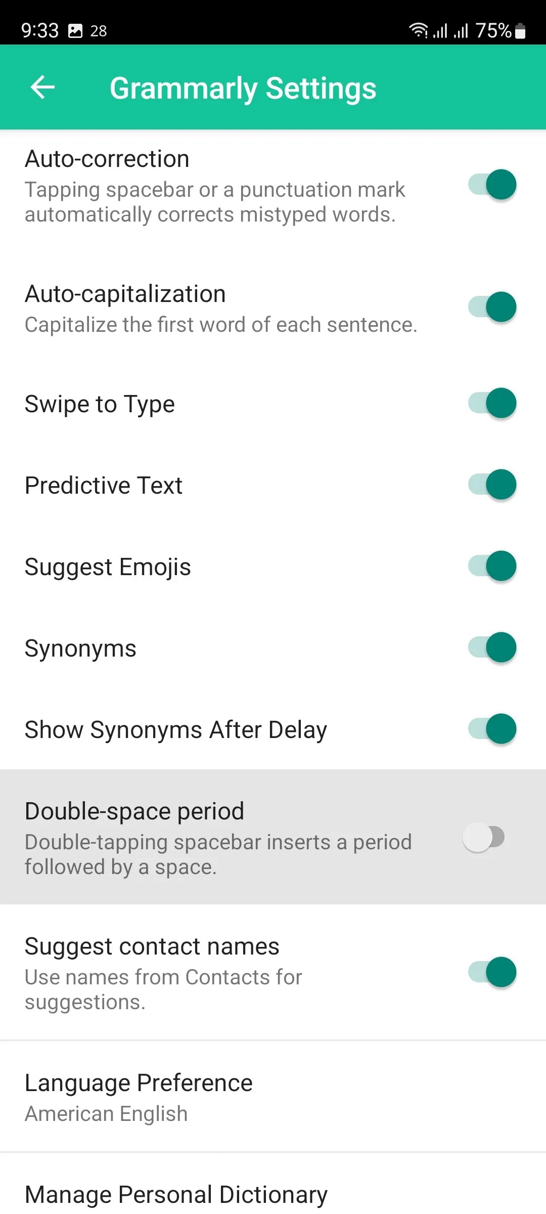 Grammarly زمانی که به زبانهای پشتیبانی شده توسط آن تایپ کنید، به سرعت اشتباهات شما را رصد کرده و آنها را تصحیح میکند. البته این تصحیح میتواند خودکار باشد یا به صورت پیشنهاد کلمات و مواردی از این دست. برای مثال زیر کلمات اشتباه خط میکشد و از شما میخواهد آنها را حذف کنید و یا آن را با کلمهای دیگر جایگزین کنید. از جمله قابلیتهای دیگر این اپلیکیشن میتوان به امکان پیشبینی کلمات، پیشنهاد ایموجی، پیشنهاد کلمات مترادف و… اشاره کرد.