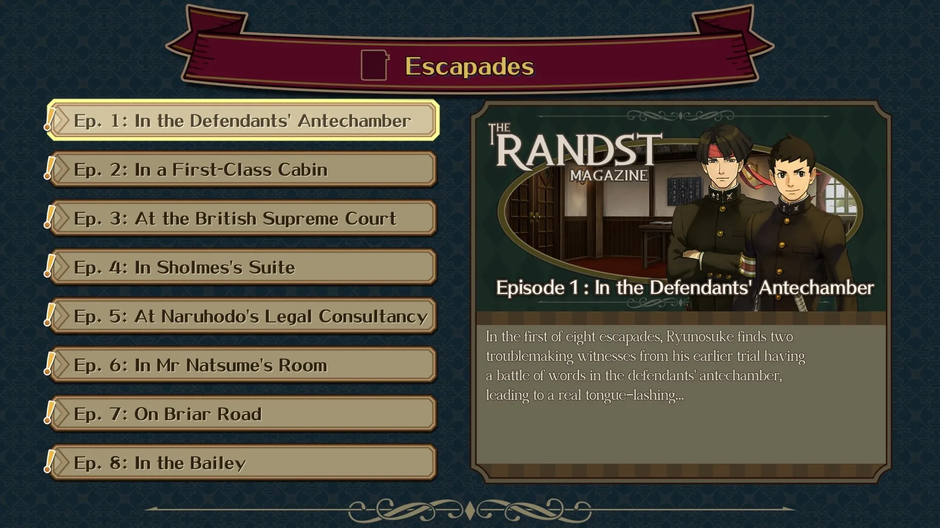 دو قسمت مختلف در این سری فرعی عرضه شده که هر دو قرار است در بستهای به نام The Great Ace Attorney Chronicles به پلتفرمهای جدیدی بیایند. این بازیها تا به حال به زبان انگلیسی ترجمه نشده بودند و برای اولین بار است که شاهد عرضهی آنها به زبانی غیر از ژاپنی و روی کنسولهایی به غیر از نینتندو 3DS هستیم.