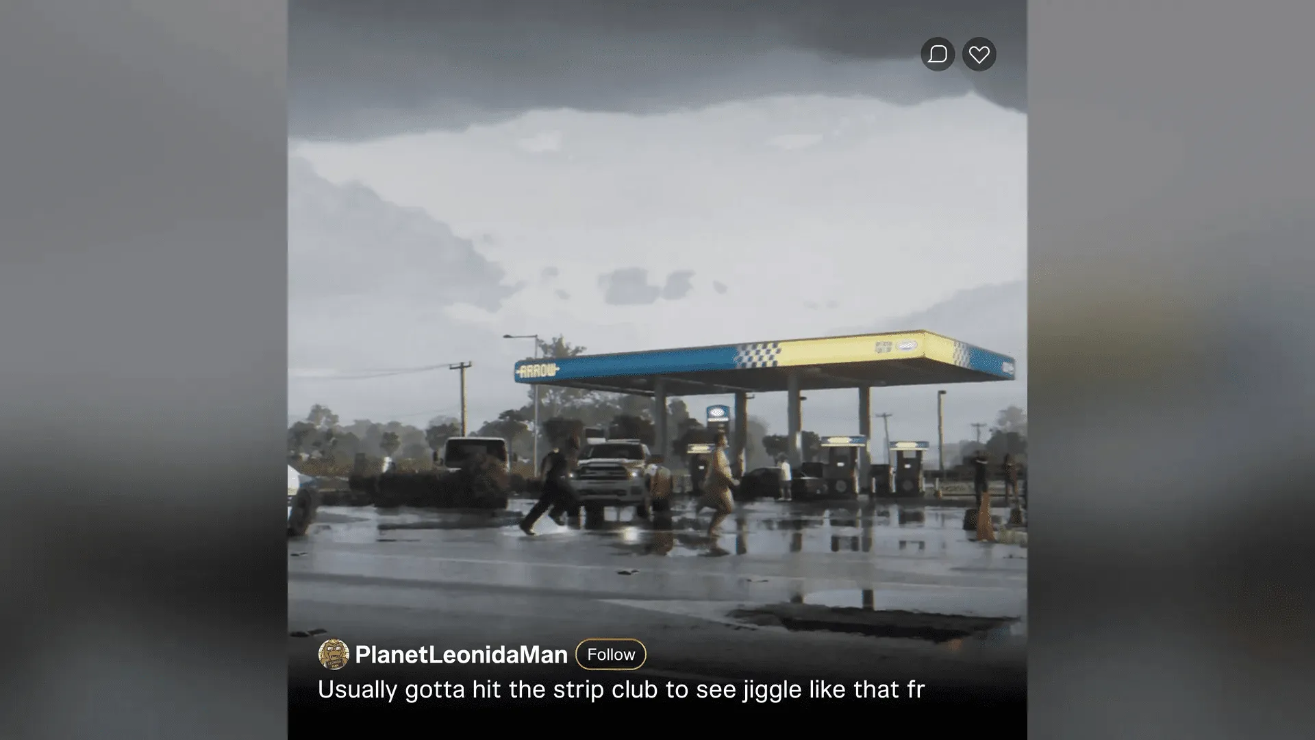 این صحنه و چگونگی پردازش رنگ خودروها و بازتاب محیط بر بدنهی خودروها به واقعیترین شکل ممکن به تصویر کشیده شده است. حتی آسمان آبی این تصویر هم تفاوتی با واقعیت ندارد. مهمتر از آن، آدمهایی هستند که در تمام صحنههای بازی یک کار خاص را انجام میدهند. همهیشان.