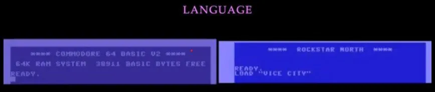 در نظر داشته باشید که صفحهی کومودور ۶۴ از شکل اصلیاش خارج شده است. حالا عوض آنکه در بالای صفحه کومودور ۶۴ نوشته شده باشد «راکاستار نورث» را میبینیم. آن متن متضمن نوعی اطلاعات است که به معنای واقعی کلمه از طرف سازنده حذف شده است، همچنانکه در این تصویر میبینیم: