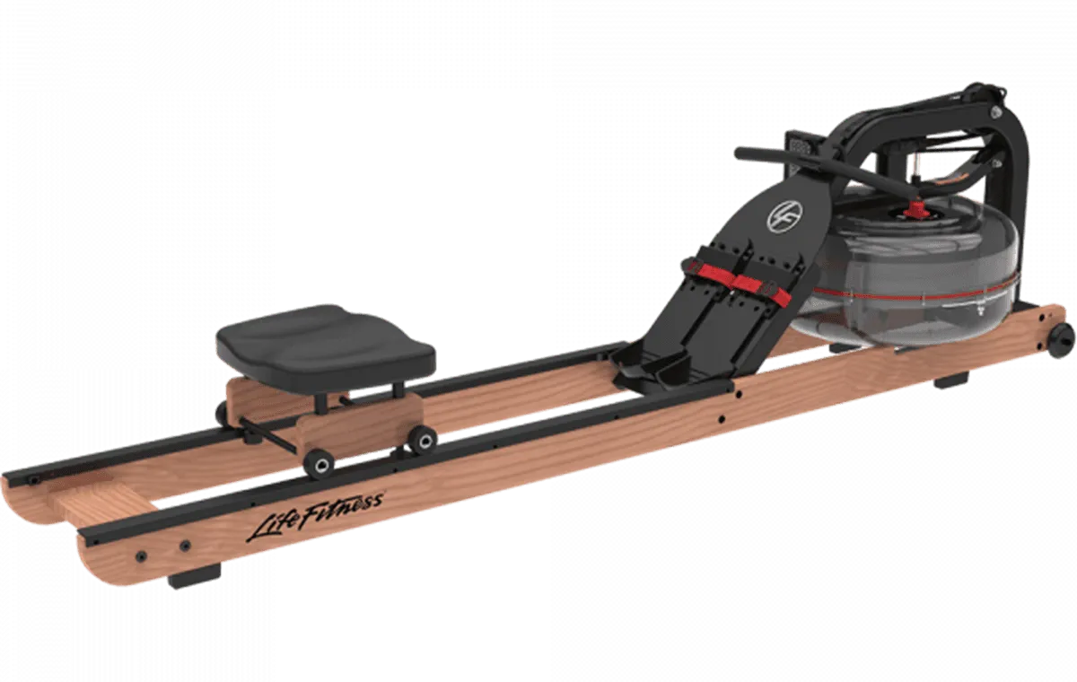 ورزش با این دستگاه احساس بهتری دارد و وجود فشار آب یادآور پارو زدن واقعی در آب میشود. این نوع دستگاه معمولا با یک تسمه کار میکند که به پروانه متصل میشود. پروانه هم در یک مخزن پر از آب قرار دارد و وجود همین آب منجر به شکلگیری مقاومت در برابر پروانه میشود. در این وسیله هم اهرم برای تنظیم پروانه و کم و زیاد کردن مقاومت وجود دارد. جدا از این، با کم و زیاد کردن مقدار آب هم میتوانید مقاومت را تغییر دهید.
