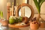 اگر به دنبال یک ایده چیدن سفره هفت سین متفاوت میگردید که بتواند حس و حال تازه شدن طبیعت را هم به خانهی شما اضافه کند، پیشنهاد میکنیم به سراغ هفت سین چوبی بروید. ستهای چوبی تیره رنگ و البته روشن امسال ترند هستند و شما میتوانید در کنار آنها از گیاهان طبیعی مانند گلهای لاله و سنبل استفاده کنید. همچنین این امکان را هم دارید که ظروف چوبی مانند سینی چوبی را در کنار ظروف چینی و شیشهای به کار ببرید تا سفره هفت سین پرتر به نظر برسد. هفت سین چوبی هم برای خانههایی با دکور مدرن و مینیمال و هم برای خانههای سنتی و کلاسیک مناسب است.