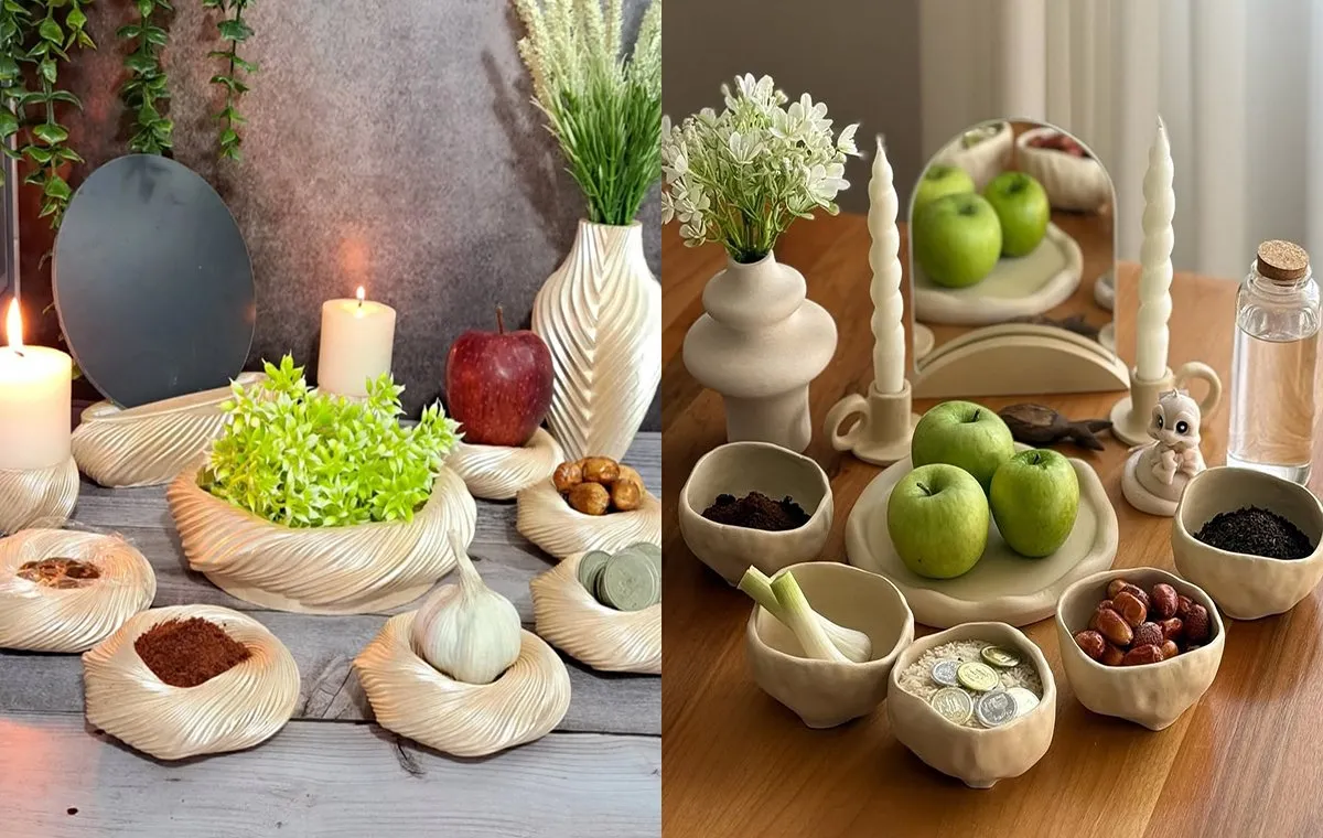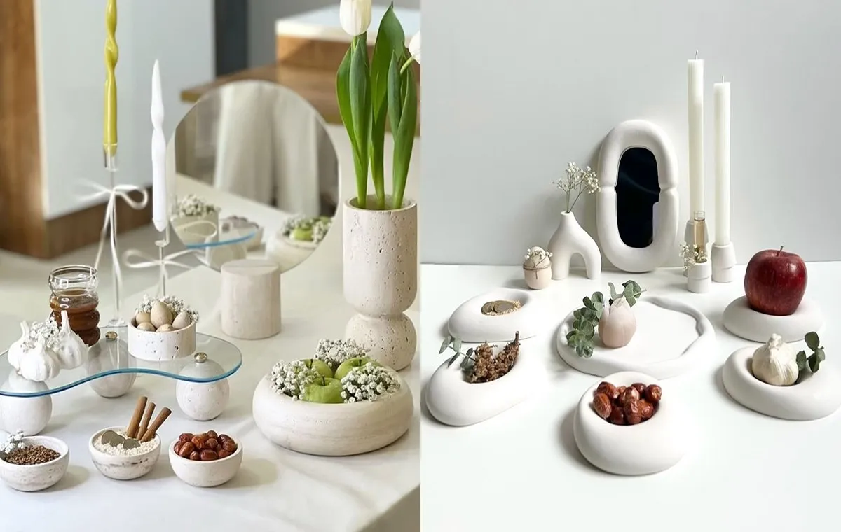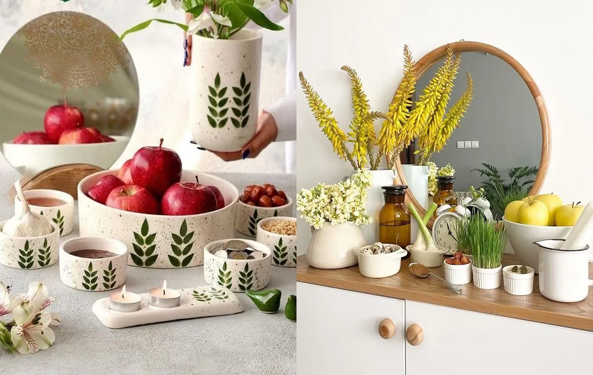 ایده تزیین سفره هفت سین با ظروف سرامیکی