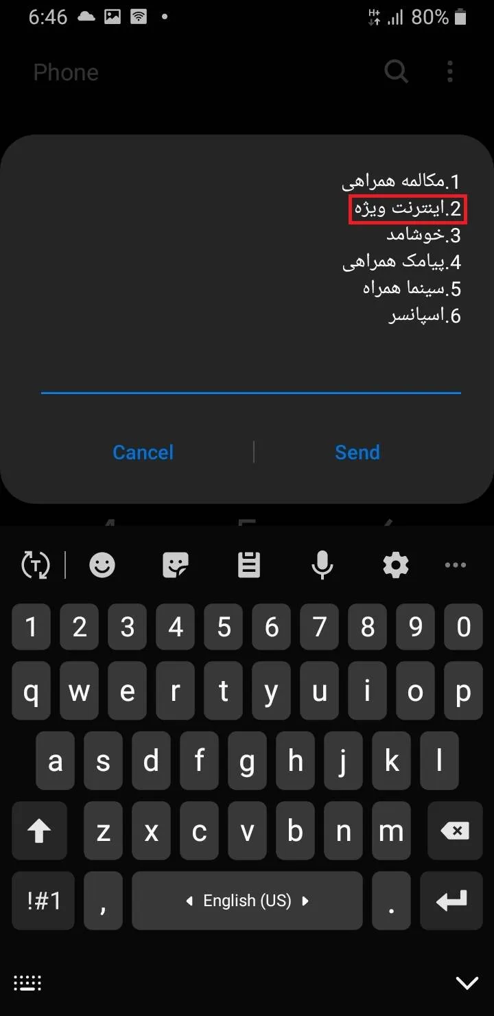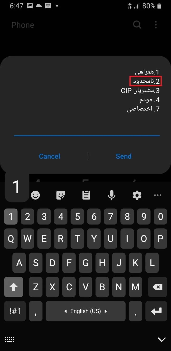 - پس از وارد شدن به منوی بستههای اینترنت، گزینهی 2 (بستههای نامحدود) را انتخاب کنید.