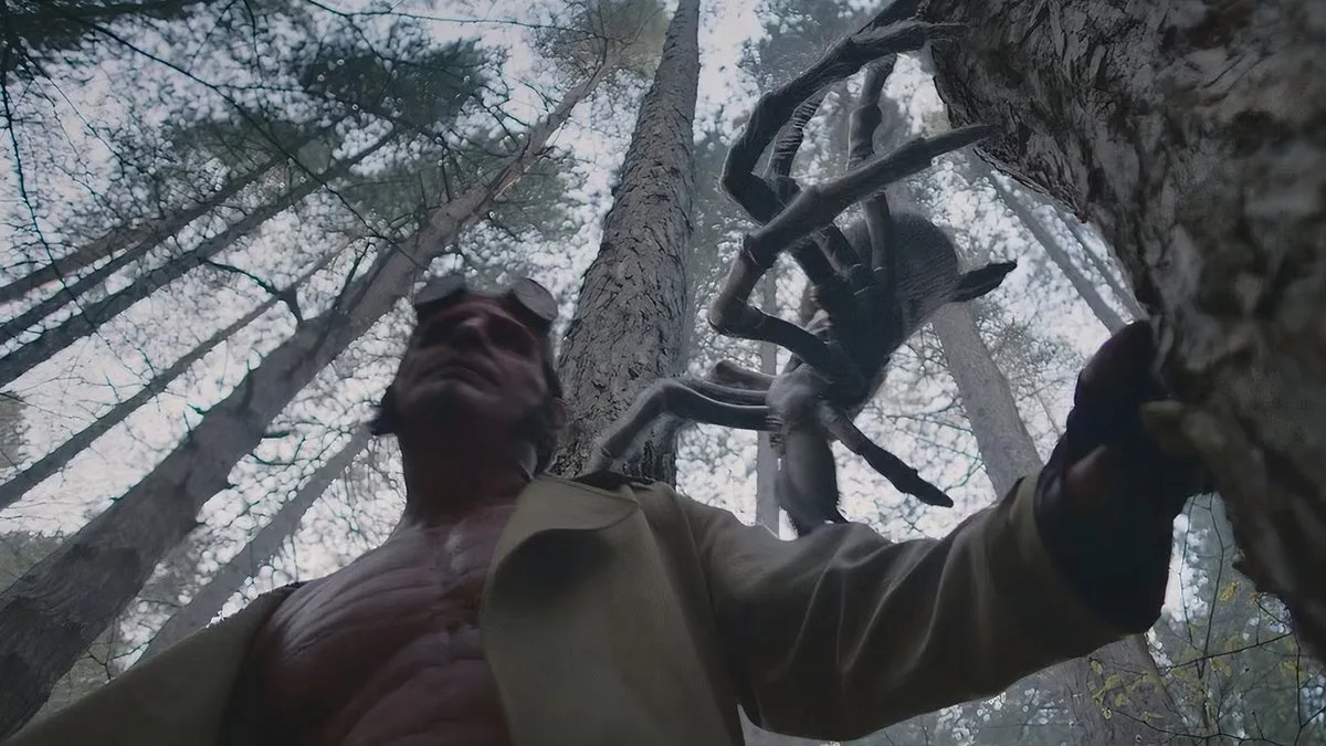 با توجه به تدوین معرکهی فیلم، همزمان هلبوی را میبینیم که دارد با باد و برگ مبارزه میکند! فکر میکنید دارم شوخی میکنم، اما عملا بادهای شدیدی به سمت او میآیند و این قرار است تهدید جدی سر راه پسر جهنمی باشد که با یک فشار مشتش سر مارها و زامبیها را له میکند و حتی با ملاقات با شیطان هم ککاش نمیگزد. جایی در همین تونل است که جو شروع میکند به ورد خواندن تا جلوی عنکبوتی را بگیرد. اما به جای آنکه به زبانهای سحرآمیز حرف بزند، به آلمانی جملاتی را تکرار میکند که فکر کنم برای امریکاییها به همان اندازه سحرآمیز است که زبان عنکبوتها و جادوگران!