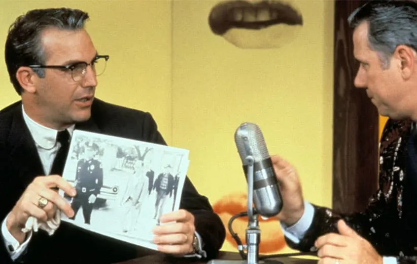 الیور استون علاقهی ویژهای به ساخت آثار تاریخی دارد اما معمولا با جهتگیریهای شخصیاش، واقعیت را دچار تحریف میکند. او در جی اف کی همانطور که از نامش هم مشخص است به ترور رئیسجمهور آمریکا جان اف کندی میپردازد و سعی میکند ابعاد ناشناختهی ماجرا را برای مخاطبان روشن کند. کوین کاستنر در نقش جیم گریسون دادستانی است که پس از مرگ کندی تحقیقات گستردهای را دربارهی توطئههای پشت این ترور آغاز کرد. البته تحقیقات او در حد تئوری ماند و تا این لحظه به اثبات نرسیده و کماکان لی هاروی اسوالد که دو روز پس از دستگیری به ضرب گلوله کشته شد و نتوانست هیچ دفاعی از خودش بکند، به عنوان متهم اصلی شناخته میشود. هر چند بسیاری از مردم معتقدند اسوالد در حقیقت بیگناه بوده یا حداقل همدستان دیگری هم داشته. در هر صورت الیور استون ترجیح داده ادعاهای آقای گریسون را به عنوان وحی منزل برای مخاطب بازگو کند.