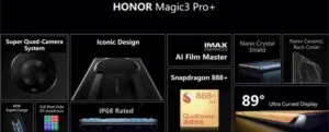 گوشیهای سری آنر مجیک 3 از سه گوشی در مدلهای استاندارد، پرو و پرو پلاس تولید و روانهی بازار شدند. این سه گوشی به اتفاق از نمایشگری 6٫76 اینچی بهره میبرند که وضوح تصویر در آنها به 1344P میرسد و نرخ بهروزرسانی تصویر آنها هم 120 هرتز است. پردازندهای که در این گوشیها بهعنوان قلب تپنده ایفای نقش میکند، اسنپدراگون 888 است که در حال حاضر قدرتمندترین پردازندهی موجود برای گوشیهای اندرویدی بعد از مدل پلاس خود به حساب میآید.