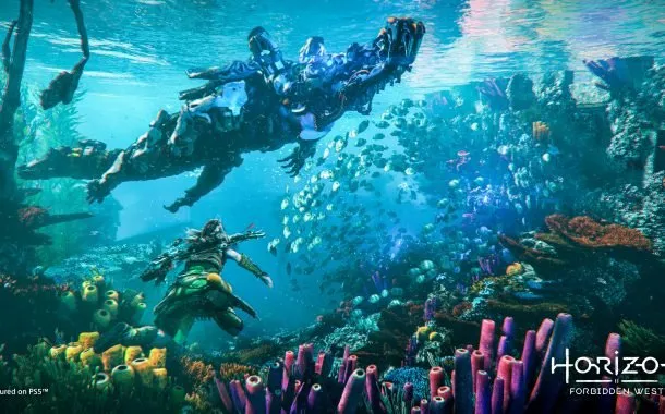 ایلوی برای فرار از دست رباتها، وارد آب میشود؛ بخشی که کاملا در فوربیدن وست جدید است. به لطف یک ماسک تنفسی، ایلوی میتواند زیر آب نفس بکشد و به همین دلیل، هیچ محدودیتی برای باقی ماندن در زیر آب وجود ندارد. دنیایی بسیار بزرگ و پرجزئیات هم زیر آب طراحی شده است و آنطور که دیدهایم، قرار است بخش قابل توجهی از بازی را هم زیر آب بگذرانیم. معمولا مراحل زیر آب در دیگر بازیها به جذابی دیگر بخشهای بازی نیستند و به نظر میرسد که برای جلوگیری از کند شدن روند بازی، در فوربیدن وست با تعدادی سیستم حرکتی مختلف در زیر آب طرف هستیم که سرعت حرکت ایلوی زیر آب را بیشتر میکند.