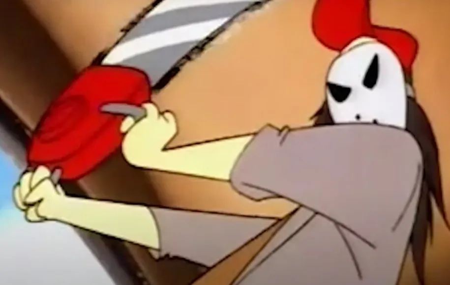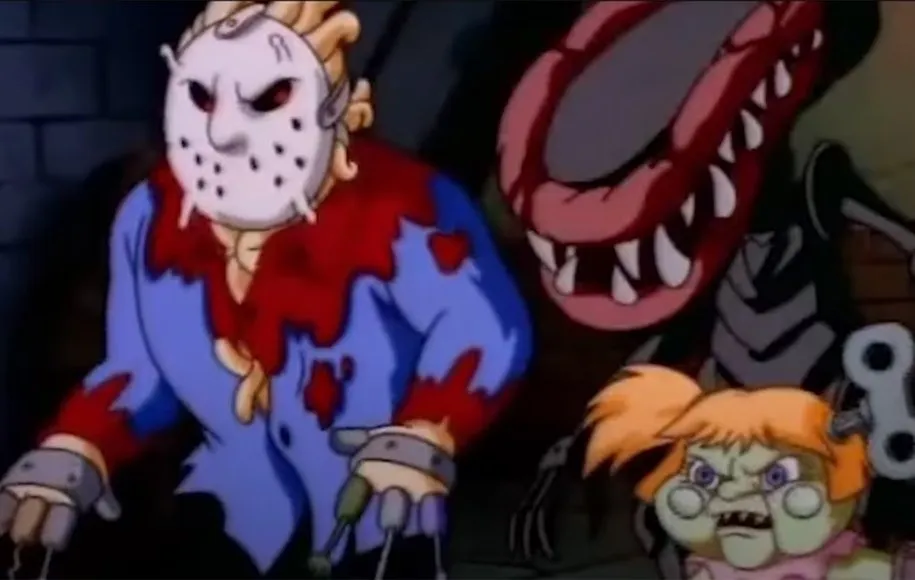 در این انیمیشن نوستالژیک و دوستداشتنی شخصیت پلاکی داک تصمیم میگیرد با خانوادهی همیلتون. جی پیگ به شهر بازی برود. آنها در راه یک مسافر را هم سوار میکنند. این موجود عجیب و غریب یک ماسک هاکی به صورت دارد و ظاهرش مشخص نیست. آنها ابتدا به شیطنتهای او بیتوجه هستند تا این که یک اره برقی را بیرون میآورد و قصد جان همه را میکند. تا همین جا هم متوجه شدید که این شخصیت ارجاعی به جیسون ورهیز از فرنچایز اسلشر محبوب «جمعه سیزدهم» (Friday the 13th) است و البته در این فهرست باز هم از او خواهیم گفت.