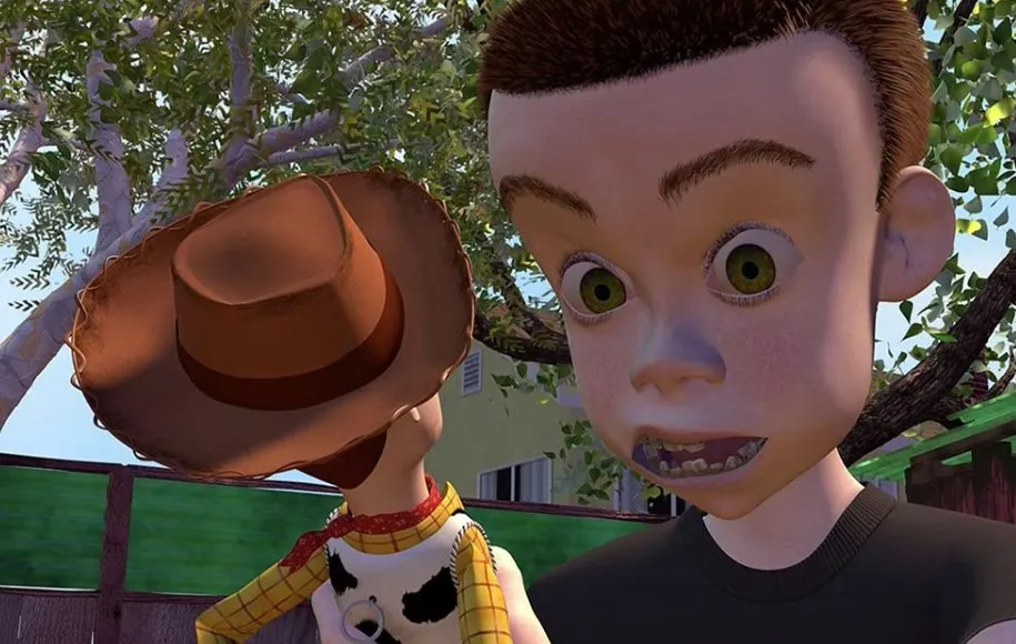 وقتی اسباببازیها در خانهی همسایه سادیست اندی، سید گرفتار میشوند در معرض یک خطر جدی قرار دارند؛ زیرا این کودک روانپریش عاشق شکنجه و خراب کردن عروسکها در کسری از ثانیه است. سازندگان تصمیم گرفتند برای ایجاد تعلیق بیشتر در سکانسی که وودی و باز به دنبال راه فراری در راهروهای خانه میگردند از فرش معروف هتل اورلوک در فیلم «درخشش» استنلی کوبریک استفاده کنند. این یک نمونهی عالی از ارجاع یکی از مطرحترین انیمیشنهای کودکانهی دنیا به اثر جاودان کوبریک است.