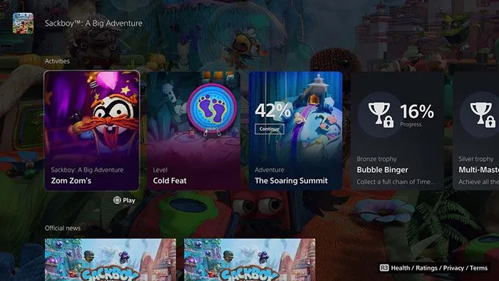 این کارتهای جدید در رابط کاربری پلیاستیشن 5 وجود دارد و با نام کارتهای فعالیت (Activities) شناخته میشود، یکی از این ویژگیهایی است که با استقبال بعضی از کاربران مواجه شده است. با استفاده از این ویژگی، میتوانید در زمان کوتاهی به بخشهای مختلفی از یک بازی یا مأموریتهای آن بروید. همچنین در بخشی از این کارتها، زمان احتمالی انجام و تمام کردن مأموریتها یا آن بخش بازی هم نوشته شده تا با همهی اینها بتوانید در وقتتان صرفهجویی کنید. برای مثال، در بازی مرد عنکبوتی: مایلز مورالز، در حین گشتوگذار در خیابانها، میتوانید با استفاده از این کارتها، به سراغ یکی از مأموریتهای فرعی که قبلا انجام ندادهاید، بروید یا برای گرفتن یک تروفی به بخشی از بازی بروید و آن را دریافت کنید و سپس ادامهی بازی خود را از مسیر قبل انجام دهید.