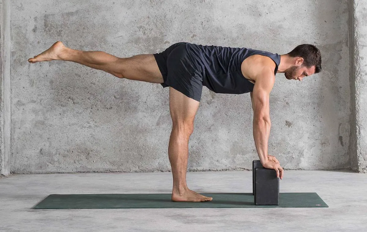 نحوهی انجام ژست قهرمان با آجر یوگا به این ترتیب است: