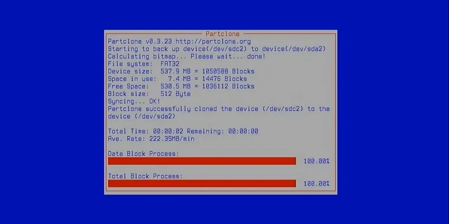 - Clonezilla بعد از تأیید نهایی شما تمام اطلاعات هارد دیسک را کپی کرده و روی SSD قرار میدهد. مهم هم نیست فایلها شامل چه مواردی میشوند. بنابراین ممکن است این فرایند بسته به حجم اطلاعات شما تا چند ساعت هم طول بکشد. البته این فرایند به سرعت خواندن هارد و نوشتن SSD هم وابسته است.