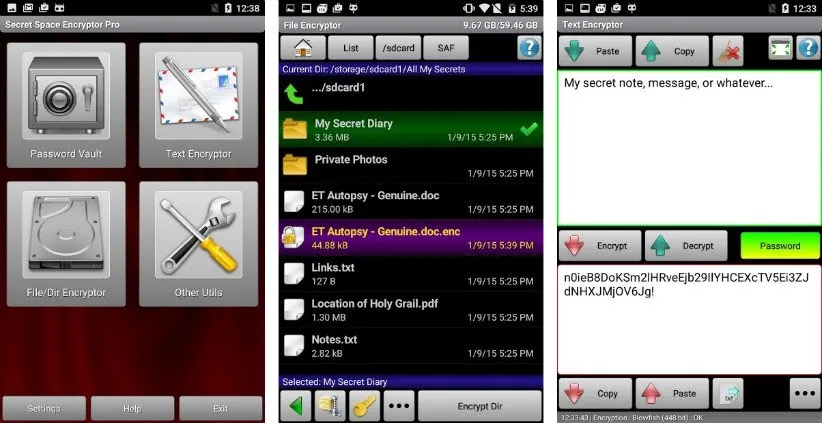 این اپلیکیشن شامل یک رمزنگار متن و یک مخزن برای ذخیرهسازی پسووردها هم هست. با ادیتور متن SSE میتوانید نوشتههایتان را رمزنگاری کنید و روی پلتفرمهای مختلف به اشتراک بگذارید. مخزن پسوورد هم به گونهای طراحی شده که تمام رمزهای عبور، پینها و نوشتههایتان را در جایی واحد نگهداری میکند و با یک رمز عبور اصلی هم به تمام آنها دسترسی مییابید.