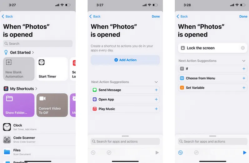 حالا هر زمان که شما روی برنامه Photos ضربه بزنید، میانبر مورد نظر شما به طور خودکار در پس زمینه اجرا شده و آیفون (از جمله برنامه تصاویر) را به طور کامل قفل میکند. شما سپس میتوانید دستگاه را آنلاک کرده و به گالری خود از طریق فیس آیدی، تاچ آیدی یا حتی ورود رمز عبور دسترسی پیدا کنید.
