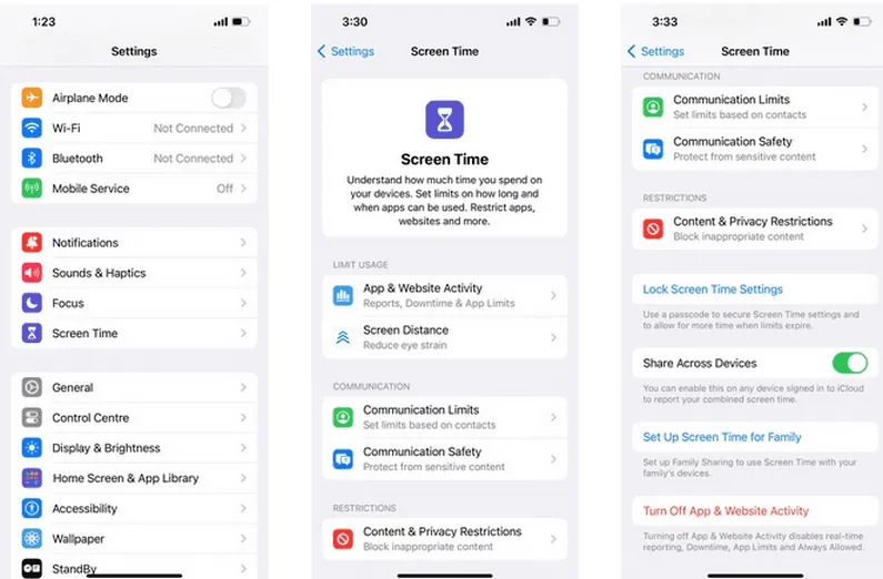 روش دوم) استفاده از قابلیت Screen Time به منظور قفل کردن تصاویر در آیفون