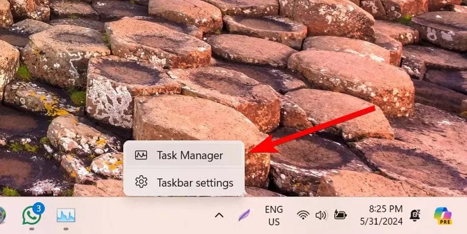 روی تسکبار راستکلیک کنید و در منوی باز شده “Task Manager” را انتخاب کنید.