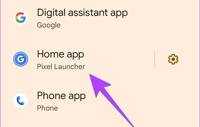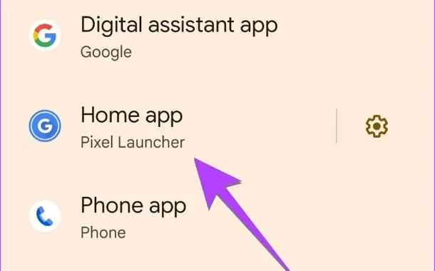 گام سوم: در این مرحله باید به دنبال یافتن نام پیشفرض لانچر گوشی هوشمند خود باشید که قبلاً پیدا کردهاید. بعد از پیدا کردن نام لانچر، روی آن ضربه بزنید.