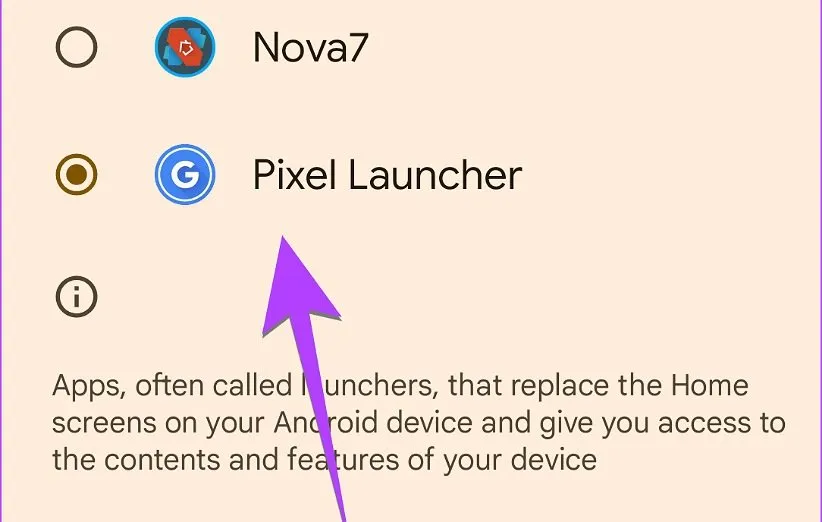 گام چهارم: لانچر انتخاب شده، لانچر پیشفرض گوشی هوشمند اندرویدی شما است. بنابراین، نام آن را به خاطر بسپارید. اکنون، مراحل ذکر شده در قسمت بعدی را برای پاک کردن دادههای آن دنبال کنید.