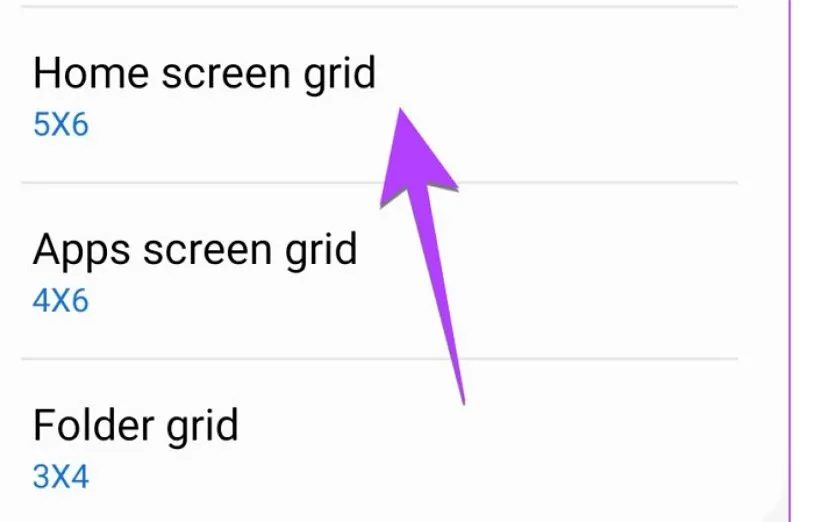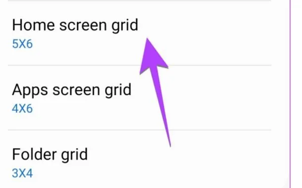 گام دوم: روی بخش «Home screen grid» ضربه بزنید و تعداد آیکون اپها که در هر سطر یا ستون ظاهر میشوند را تغییر دهید.