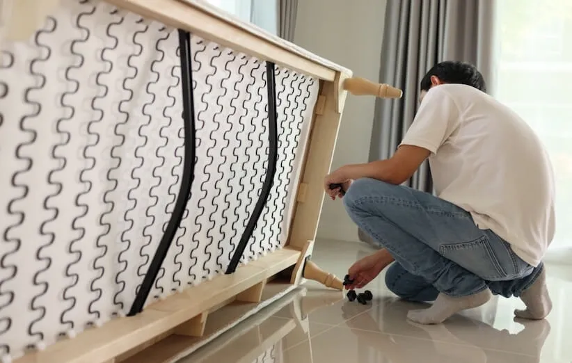 آخرین مرحله از کار تعویض روکش مبل وصل کردن پوشش گردوغبار به زیر مبل است. این پارچه علاوه بر جلوگیری از ورود خاک به داخل چارچوب، از دیده شدن فضای داخلی مبل هم جلوگیری میکند.