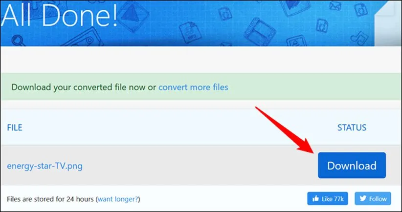 معمولا فرایند تبدیل فرمت در عرض فقط چند ثانیه صورت میگیرد و به راحتی قادر به دانلود تصویر مبتنی بر فرمت جدید هستید.