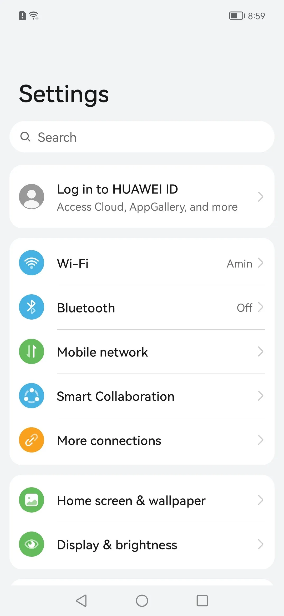 دسترسی به منوی تنظیمات سریع و همچنین پنل اعلانات هم به ترتیب با سوایپ از سمت راست-بالای نمایشگر و چپ-بالای نمایشگر به پایین صورت میگیرد. مثلا در گوشیهای سامسونگ فرقی نمیکند از کدام قسمت بالای نمایشگر به پایین سوایپ میکنید، پنل تنظیمات و اعلانات در یک صفحه ظاهر میشوند اما در گوشیهای هواوی برای جلوگیری از شلوغی، قسمت بالایی نمایشگر به دو بخش تقسیم میشود؛ با سوایپ از راست به پایین پنل اعلانات و با سوایپ از چپ به پایین، منوی تنظیمات سریع باز خواهد شد. علاوه بر اینها، در بین گزینههای موجود در پنل تنظیمات سریع، گزینهی +Device را شاهد هستیم که به کاربر اجازه میدهد میتپد و میتبوک را به گوشی متصل کنند. همچنین Huawei Vision هم امکان اشتراکگذاری صفحه با تلویزیون را به کاربر میدهد.