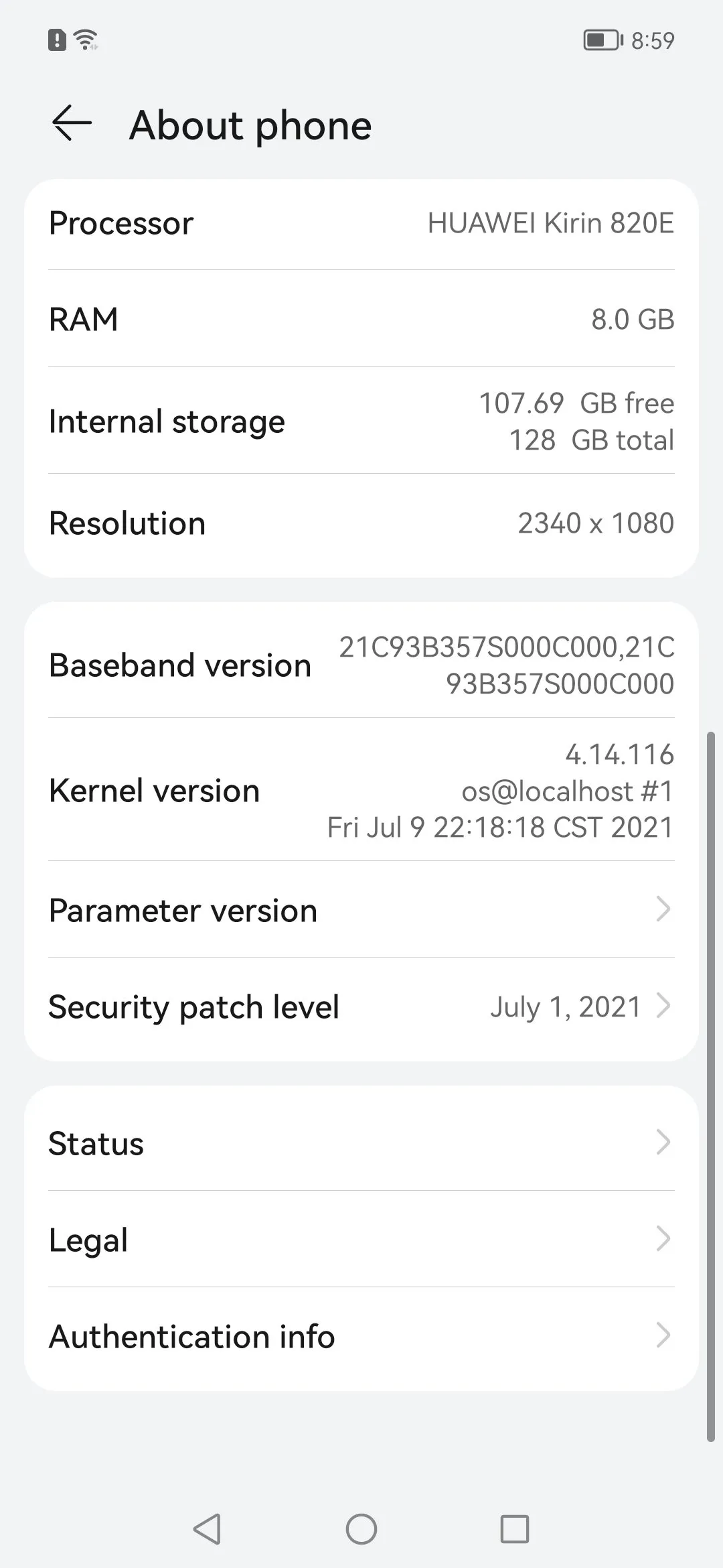 - مشخصات پردازنده: کرین 820E (با لیتوگرافی 7 نانومتری) – 6 هستهای، 3 هسته با فرکانس 2٫22 گیگاهرتز از نوع Cortex-A76 و سه هسته با فرکانس 1٫84 گیگاهرتز از نوع Cortex-A55 – پردازشگر گرافیکی Mali-G57 (با شش هسته)