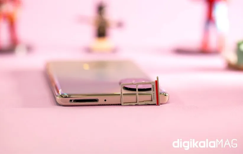اما میرسیم به فریمهای کناری گوشی. همانطور که گفته شد، فریم گوشی از جنس آلومینیوم است و همین موضوع هم سبب شده وقتی گوشی را در دست میگیرد، حس یک پرچمدار باکیفیت به شما القا شود. هواوی اما روی طرف راست این فریم فلزی دو کلید تعبیه کرده که یکی کوچک و دیگری نسبتا دو برابر بزرگتر است. کلید کوچک مطابق انتظار نقش کلید پاور را ایفا میکند اما کلید بزرگتر برای کنترل صدا بکار میرود. روی فریم سمت چپ هیچ کلید فیزیکی یا به طور کلی حفرهای دیده نمیشود. اما در فریم بالایی شاهد یک میکروفون و درگاه سیمکارت و در فریم پایینی هم شاهد میکروفون دیگر، درگاه USB-C و بلندگو هستیم که در واقع تنها بلندگوی این گوشی به شمار میرود اما کیفیت خوبی دارد و صدا را با بلندی خوبی به گوش کاربر میرساند. هرچند نمیتوان انکار کرد که بلندگوی استریو برای میانردهای با این قیمت یک قابلیت مورد انتظار بود.