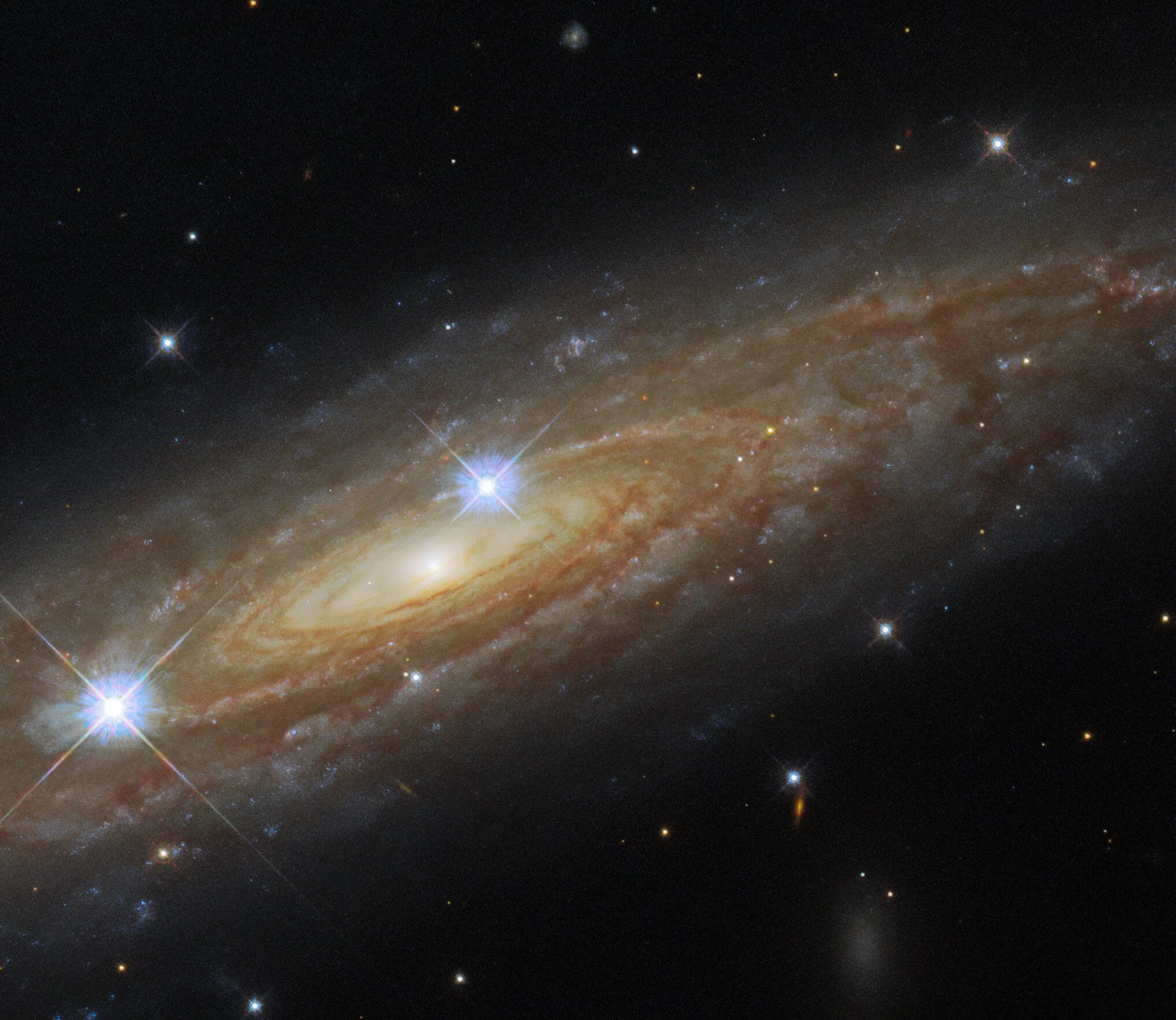 UGC 11537 در فاصلهی 230 میلیون سال نوری از ما در صورت فلکی «عقاب» (Aquila) قرار دارد و به صفحهی کهکشان راه شیری نزدیک است. به اندازهای نزدیک که ستارگان پیشزمینهی کهکشان خودمان هم در این تصویر هابل دیده میشوند. ازجمله دو ستارهی درخشان که متعلق به راه شیری هستند و در جلوی کهکشان UGC 11537 رخنمایی میکنند.