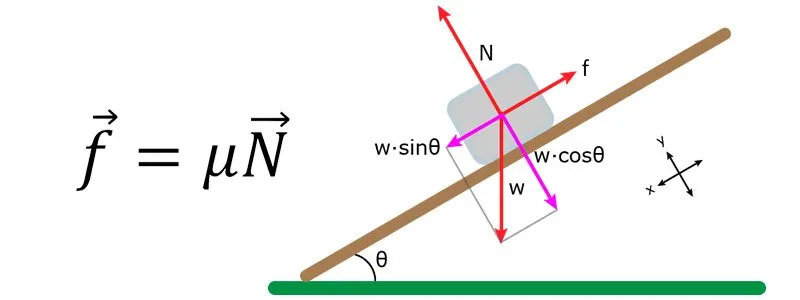 از سوی دیگر همانطور که فرمول اصطکاک نشان میدهد نیروی عمودی تکیهگاه یک عامل مهم در نیروی مقاومت سطحی است. بنابراین هرچه نیروی رو به داخل سطح بیشتر باشد، اصطکاک بیشتر میشود. یک عامل مؤثر در نیروی عمودی سطح که بر اثر گرانش زمین و وزن اشیا ایجاد میشود، شیب سطح است که هرچه کمتر باشد، نیروی عمودی و درنتیجه اصطکاک زیادتر میشود.