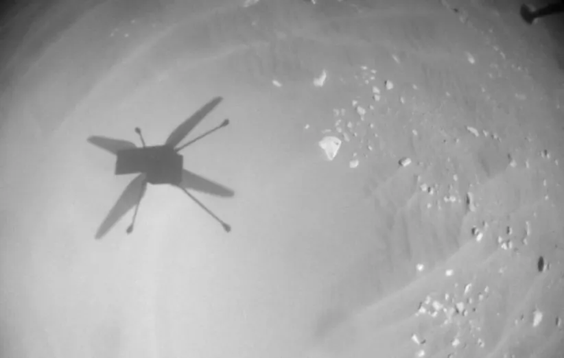 عکس کاور: سایهی بالگرد نبوغ و عوارض سطحی مریخ در بیستوسومین پرواز