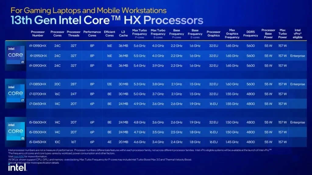 اینتل با پردازندههای جدید سری HX، گیمرها و تولیدکنندگان محتوا را هدف قرار داده است. پردازندههایی که در قدرتمندترین مدل خود از 8 هستهی پردازشی قدرتمند با فرکانس 5٫6 گیگاهرتز و 16 هستهی کممصرف (در مجموع 24 هسته) بهره میبرند. طبق ادعای اینتل، پردازندهی Core i9-13900HX که قدرتمندترین پردازنده از مدلهای نسل 13 مخصوص لپتاپ این شرکت به حساب میآید، در حال حاضر سریعترین پردازندهی موبایل در جهان نیز محسوب میشود.