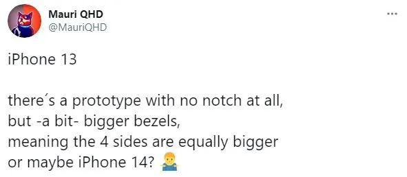 آیا رخ دادن این اتفاق به این معنا است که آیفون 12S بعدی به جای ناچ دارای حاشیهی بزرگی در بالای نمایشگر خود است؟ بدون شک احتمال رخ دادن این اتفاق بسیار کم است چون بسیاری از منابع قابل اعتماد تاکنون ادعا کردهاند که اپل در نسل بعدی آیفون تغییرات زیادی را در طراحی ظاهری ایجاد نخواهد کرد.
