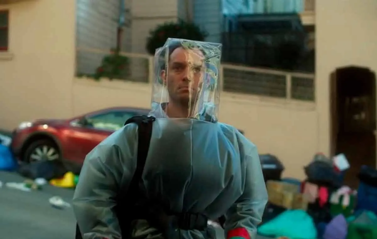 جود لا در این جا در قالب نقش بلاگری سمج ظاهر شده که دوست دارد ته و توی ماجرا را درآورد و چون کارآگاهی به دنبال چرایی گسترش و شکلگیری این بیماری است. بیماری موجود در فیلم مانند کرونا خیلی زود جهانی میشود اما کشندهتر از آن است. جهانی ترسیده و سر در گریبان برده و دولتها و مراکز بهداشتی همه از تعجب انگشت به دهان ماندهاند و کاری از پیش نمیبرند. در این میان سودربرگ فیلمش را به بخشهای مختلف تقسیم کرده و در هر بخش به قصهی یکی از طرفین درگیر در ماجرا پرداخته است. از سویی با دانشمندانی سر و کار داریم که تمام توان خود را صرف پیدا کردن درمان یا واکسن کردهاند. از سوی دیگر با مردی که خانوادهی خود را درگیر بیماری میبیند و به نوعی نمادی از تمام مردم معمولی است و پشتههای ساخته شده از کشتهها را نظاره میکند.