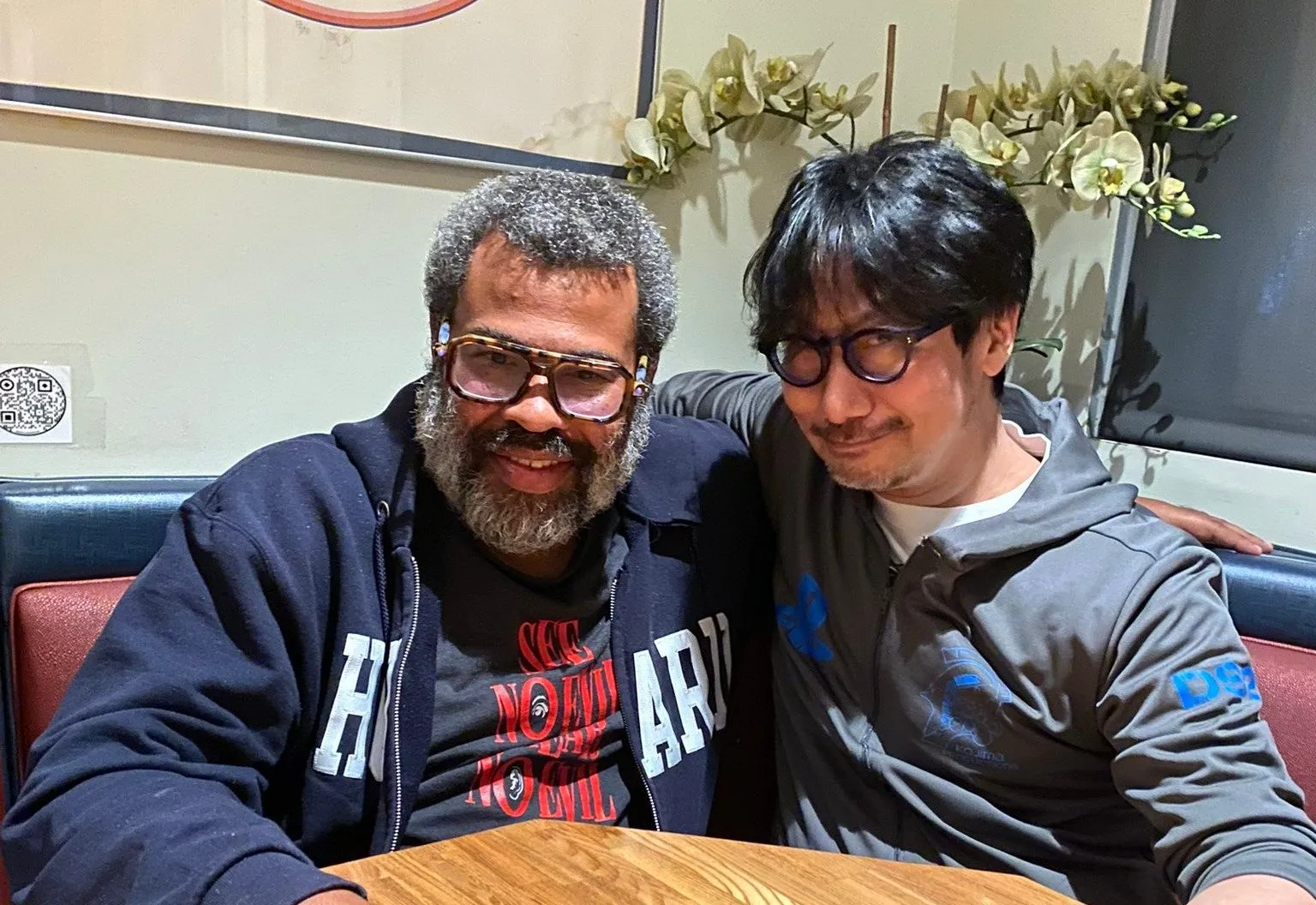 تصویری که کوجیما از خود به همراه جوردن و جف کیلی در سپتامبر 2022 منتشر کرد. این تصویر به نوعی نشان میدهد که جوردن پیل از ماه ذکر شده به توسعهی بازی پیوسته است.
