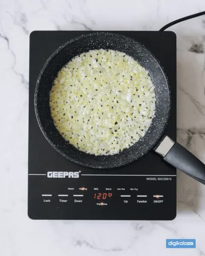 پیاز را به صورت نگینی خرد کنید و در روغن تفت دهید تا طلایی شود.