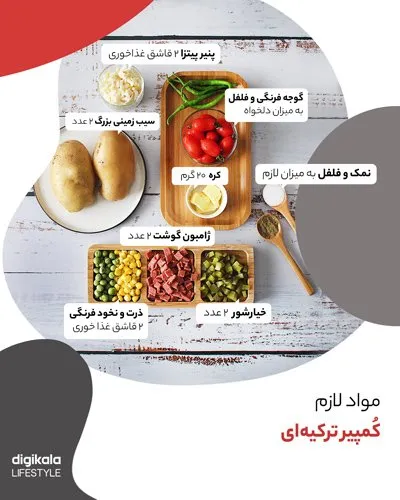 اگر به کشور ترکیه سفر کرده باشید، حتما در شهرهای مختلف به خصوص استانبول با یک خوراکی خوشمزه مواجه شدهاید که بین مردم ترکیه بسیار محبوب است. کمپیر ترکیهای یک غذای کامل و حجیم است که پایهی آن سیبزمینی پخته است که با کره و پنیر پیتزا مخلوط میشود و روی آن ترکیبات مختلف گوشت و سبزیجات قرار میگیرد تا طعم خوشمزهی آن را تکمیل کند. در این آموزش آشپزی تصویری دیجیکالا مگ میخواهیم طرز تهیه کمپیر ترکیهای را به شما آموزش دهیم که خیلی سریع آماده میشود و حال و هوای خیابانهای استانبول را برایتان زنده میکند. با ما همراه باشید.