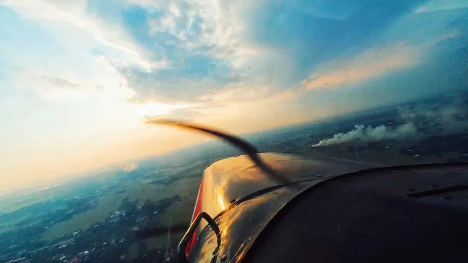 فیلتر ND عملا مانند عینک آفتابی است و میزان نوری که وارد سنسور دوربین میشود را کاهش میدهد. این نوع فیلترها برای ثبت عکسهای مبتنی بر نوردهی طولانی در طول روز اهمیت بسیار زیادی دارند. به عنوان مثال تصویر بالا را در نظر بگیرید که در یک هواپیما ثبت شده است. با توجه به اینکه سرعت شاتر بالا بوده، پروانهی هواپیما هم در تصویر ثبت شده است. اما با استفاده از فیلتر ND، عکاس میتوانست سرعت شاتر را پایین بیاورد تا پروانهی هواپیما در عکس کاملا نامرئی شود.